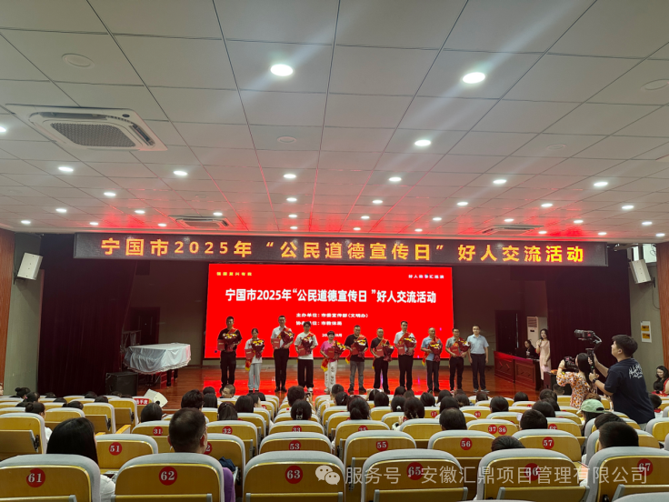 9月19日,宁国市2025年“公民道德宣传日”好人交流活动在市青少年活动中心举行。安徽汇鼎项目管理有限公司党支部书记肖巍同志荣获“2025年6月宁国好人”称号,并接受大会表彰。
