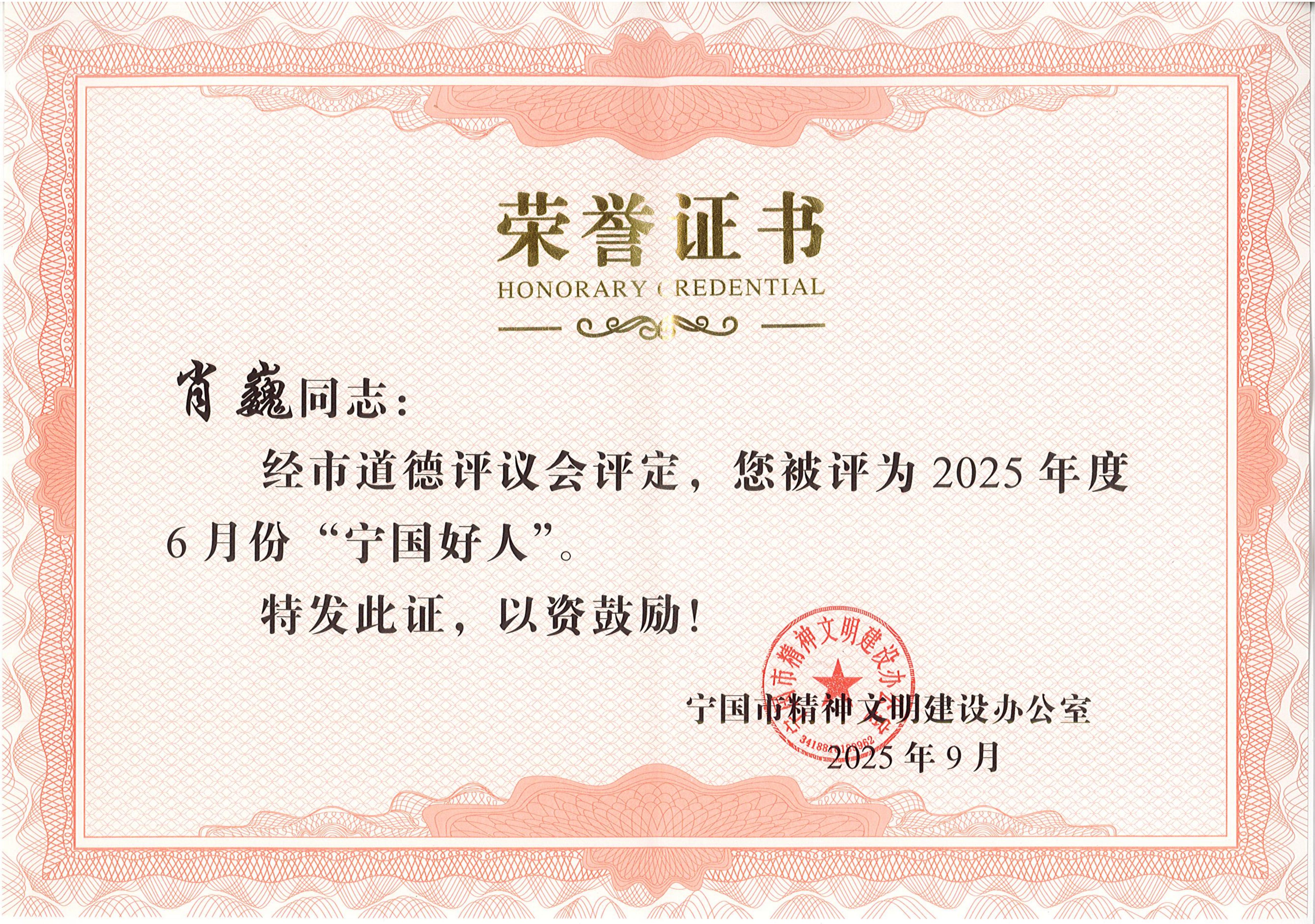 肖巍-2025年度“宁国好人”