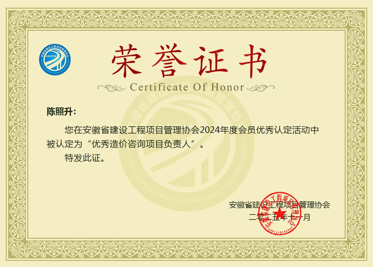 陈照升-2024年度“优秀造价咨询项目负责人”