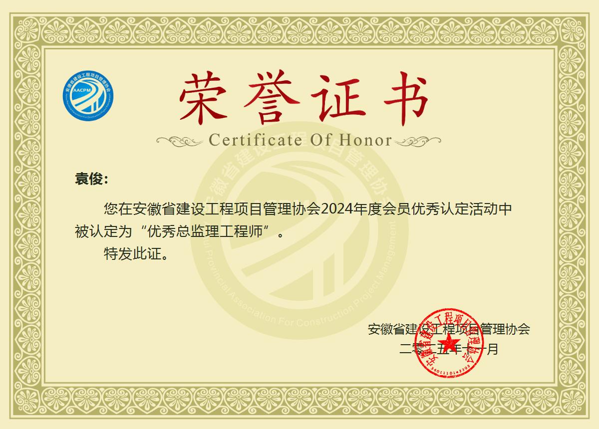袁俊-2024年度“优秀总监理工程师”