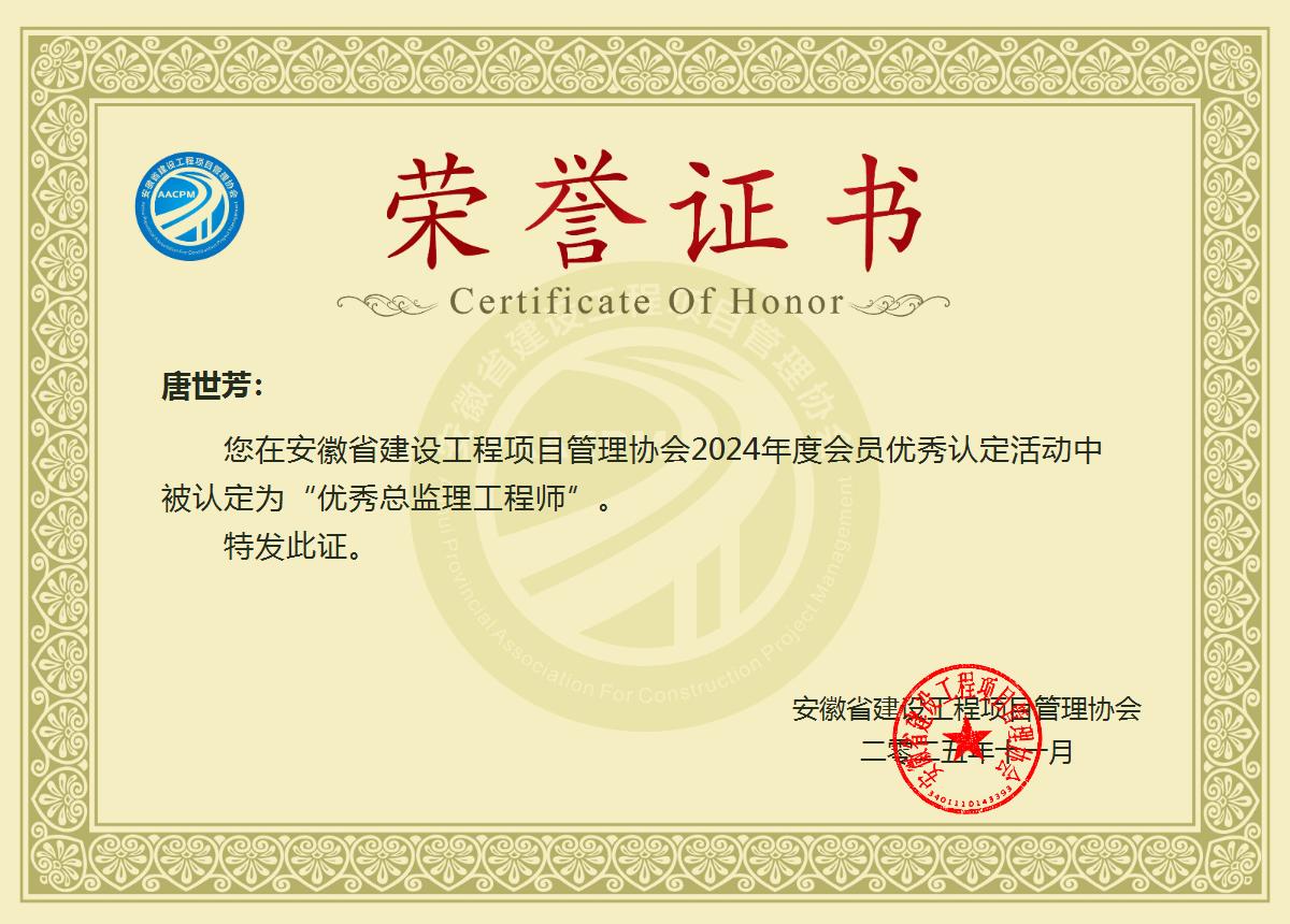 唐世芳-2024年度“优秀总监理工程师”