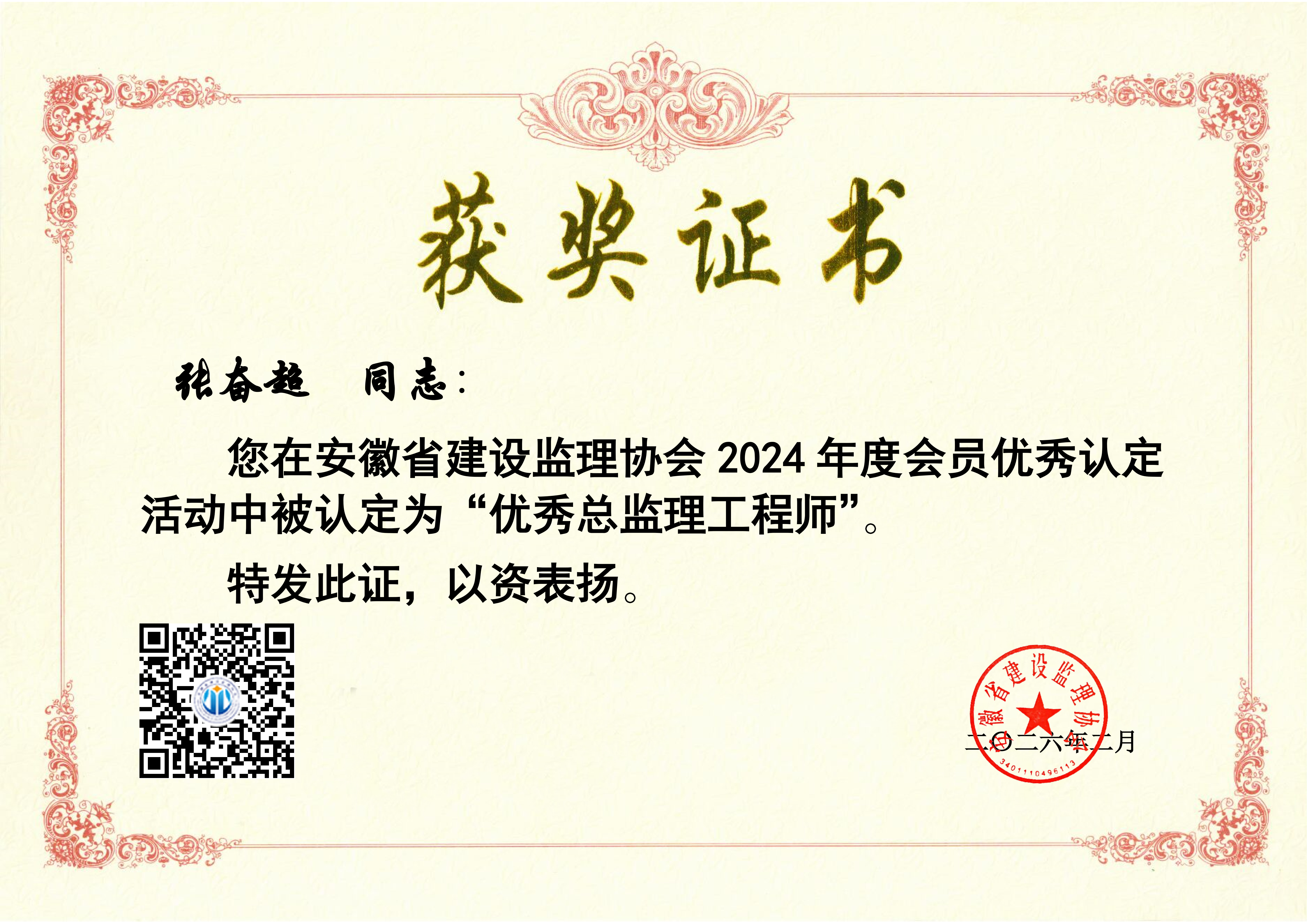 张奋超-2024年度“优秀总监理工程师”